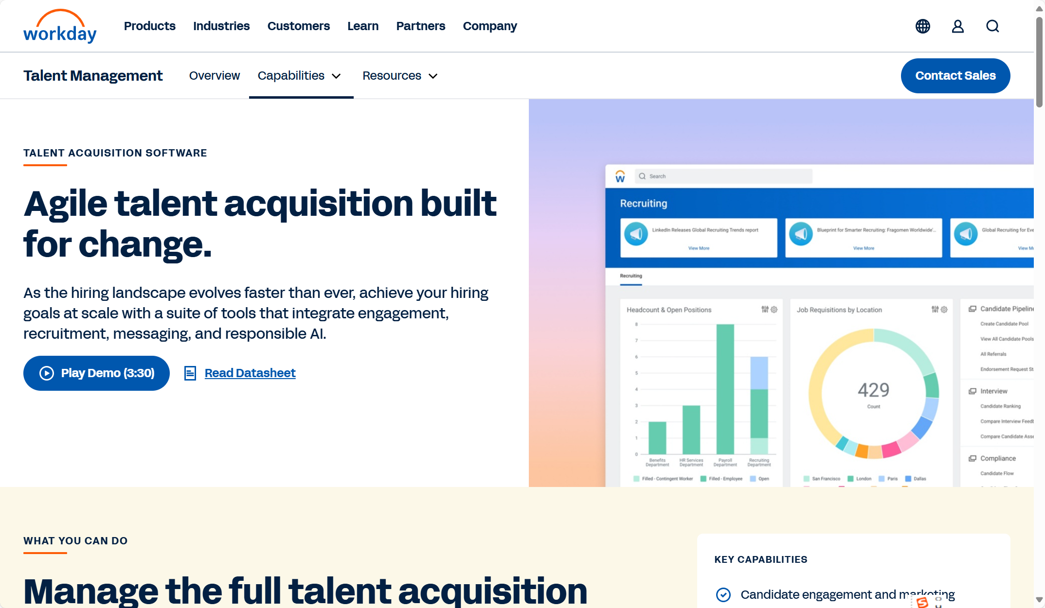 Workday Recruiting 是 Workday 旗下集招聘发布、应聘者跟踪与入职管理于一体的企业级人才招聘管理系统,常被用于替代传统 ATS,尤其在跨国大中型企业中广泛部署。它将招聘流程与 Workday 的人力资源信息系统 (HCM) 无缝整合,支持职位发布、简历筛选、面试安排、Offer 发放与新人入职全过程的自动化管理,同时还提供强大的数据分析和招聘绩效报表功能 。