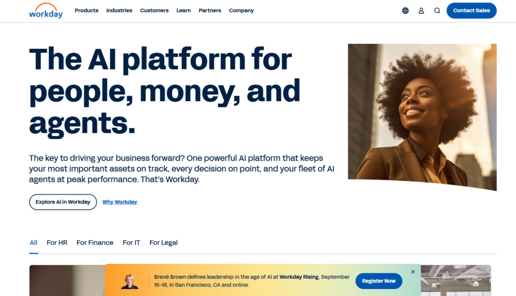 Workday适合中大型组织,尤其是正在推进全球化或数字化转型的企业,提供了一体化的人力资源与财务云解决方案。