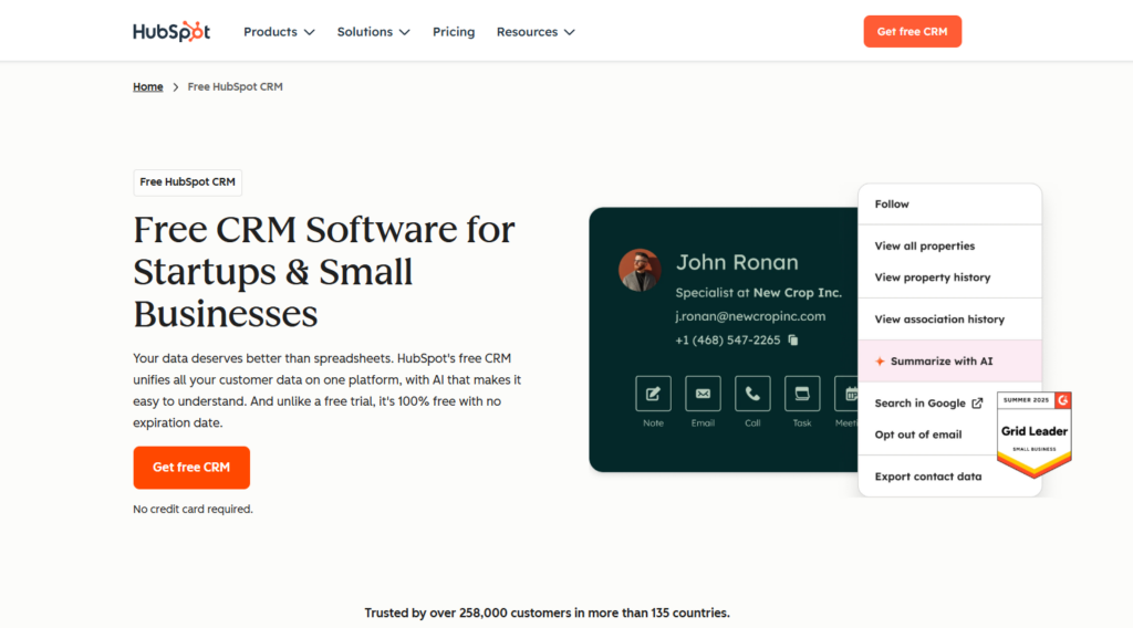 HubSpot CRM 是一款面向小型及中型企业的全面客户关系管理平台,融合了销售、营销与客户服务功能。其免费版本提供强大的基础功能,如客户管理、销售机会跟踪、管道可视化和互动记录,有助于企业快速起步。此外,系统具有直观清晰的界面和较低的学习成本,使用门槛较低,适合刚接触 CRM 的企业。