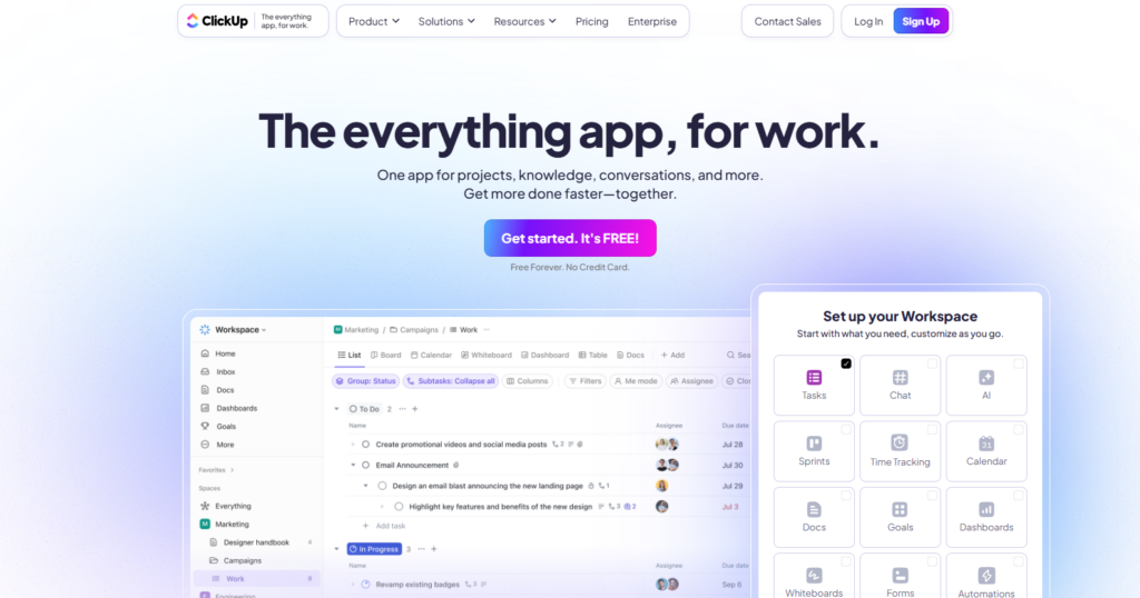 3.ClickUp:高度集成的“All-in-One”生产力平台