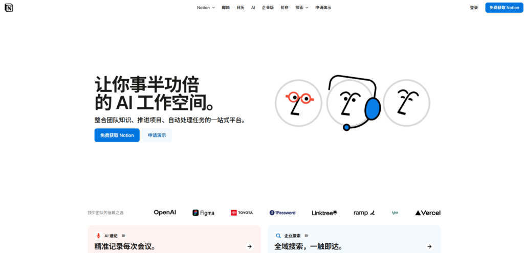 优点: 灵活性和自由度极高,用户可以像搭乐高一样构建出完全个性化的页面和系统;将文档和数据库无缝融合,非常适合进行项目文档管理和知识沉淀;美学设计出色,笔记和文档排版体验极佳。