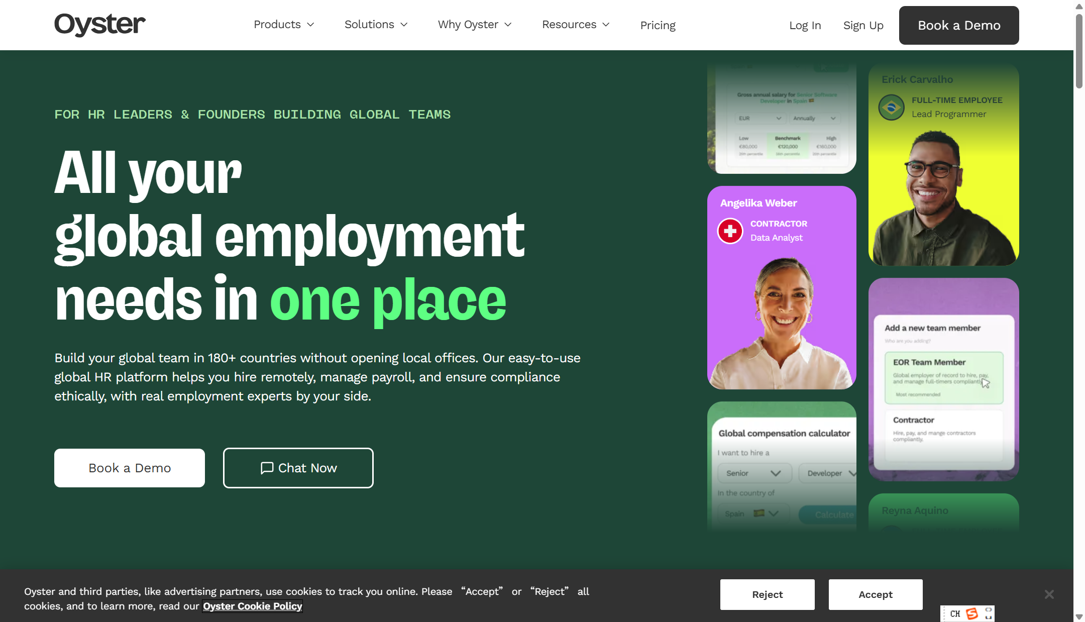 Oyster HR 是一款面向全球雇佣需求的云端平台,专注于帮助企业在不设立当地实体的情况下,实现跨国招聘、薪资发放与合规管理。**其 Employer of Record(EOR)服务覆盖超过 180 个国家,支持用人单位在这些地区快速聘用员工或承包商,并处理当地的税务、合同、福利及法律合规事务,使跨境扩张更加高效与安全 。