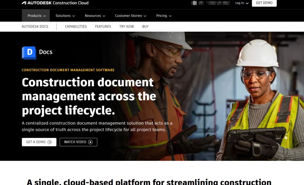 核心功能: 集中式文档与图纸管理、版本与审计轨迹、图纸标注与同步、RFI/变更管理、移动端离线访问与API集成。