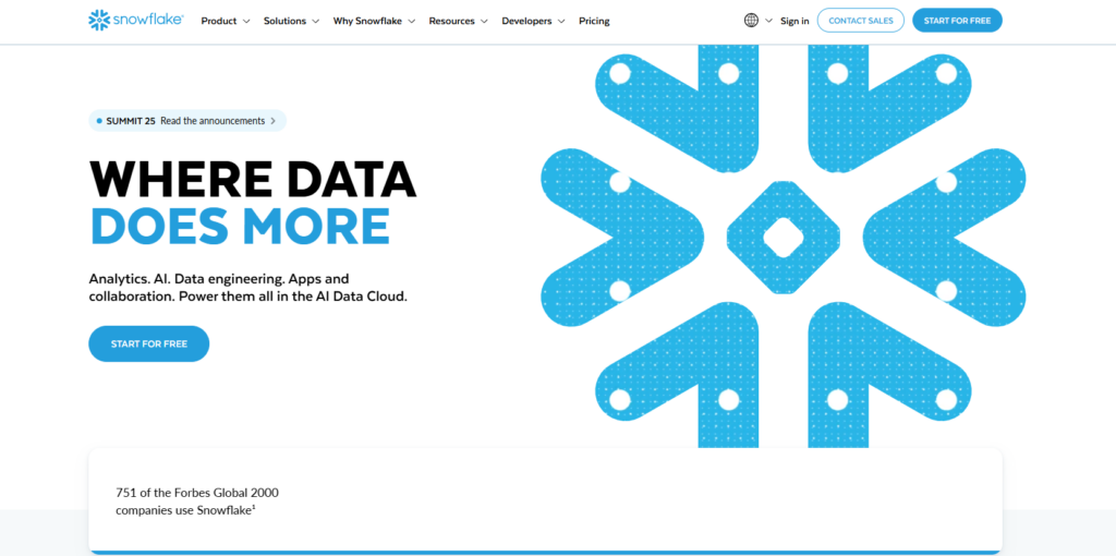 Snowflake是云数据平台领域的代表性厂商,它以“数据云(The Data Cloud)”的理念,提供了一个基于公有云(AWS, Azure, GCP)构建的SaaS化数据平台。其核心技术亮点在于存算分离的云原生架构,用户可以根据工作负载的需要,独立地、弹性地扩展计算资源和存储资源,从而在性能和成本之间取得平衡。
