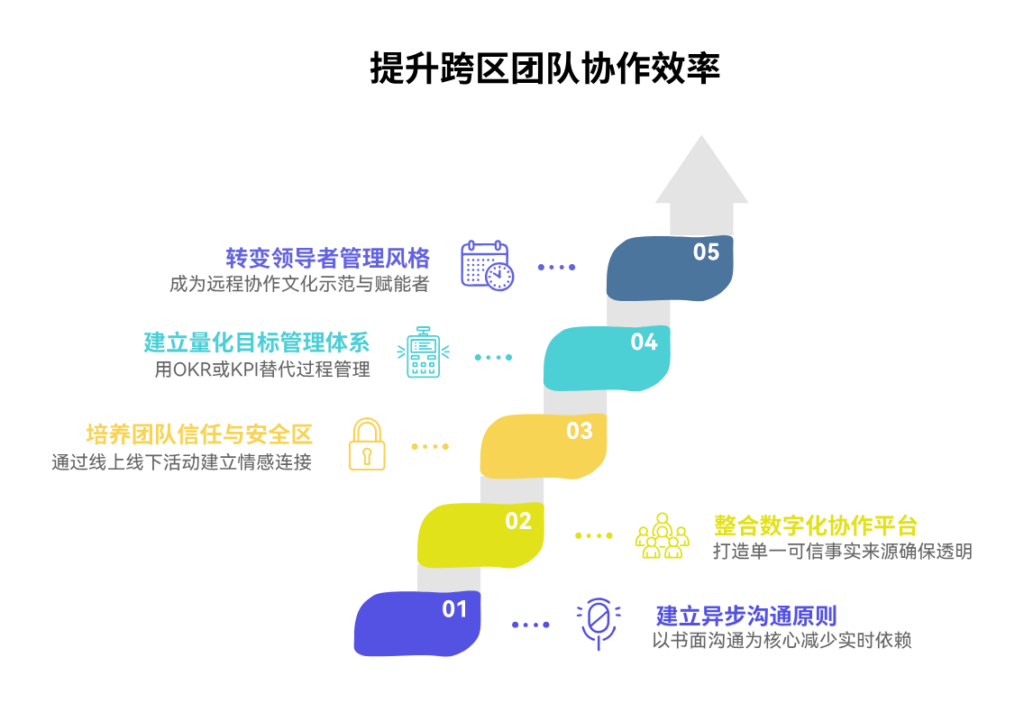 同时,需要建立明确、量化的目标与成果导向的管理体系,用清晰的OKR或KPI替代对工作过程的微观管理、最后,领导者必须以身作则,转变管理风格,成为远程协作文化的首席示范官和赋能者。 这一系列举措旨在将地理上的“距离”劣势,转化为专注、高效、灵活的组织优势。