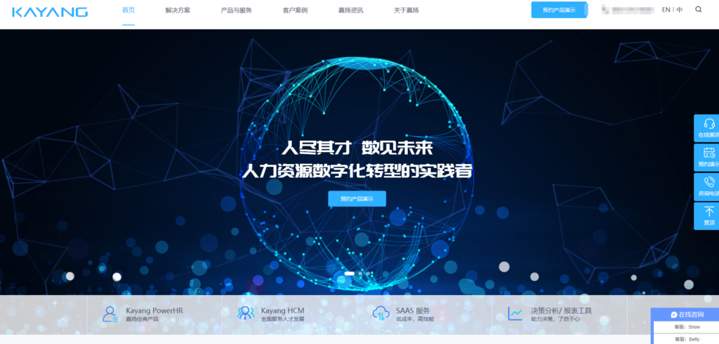 嘉扬(KAYANG)是国内较早进入人力资源管理软件领域的服务商之一,拥有多年的行业服务经验。其产品线既包括针对大型企业的e-HR系统,也提供面向中小企业的SaaS服务,覆盖了组织人事、考勤、薪酬、招聘、培训、绩效等全方位的人力资源管理需求。