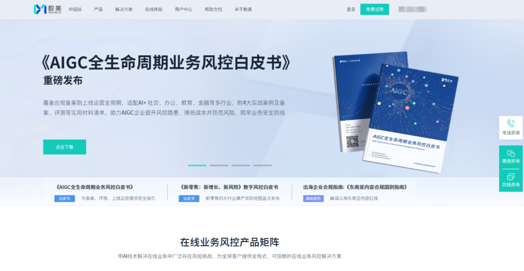 数美科技是一家专注于利用AI技术解决在线业务风险的企业,其“天净”智能内容审核引擎在业内具有较高的知名度。该产品定位为全栈式智能内容风控解决方案,旨在为各类互联网平台提供实时、精准的内容识别与过滤服务。