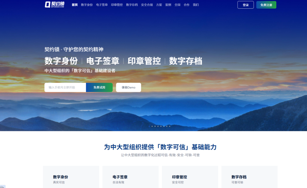 契约锁专注于为企业提供一体化的电子签章和印控管理解决方案。它的产品特色在于将电子签名与实体印章的管控相结合,通过一个平台帮助组织实现对数字印章和物理印章的全生命周期管理,满足了大型组织数字化转型过程中复杂的印章使用需求。