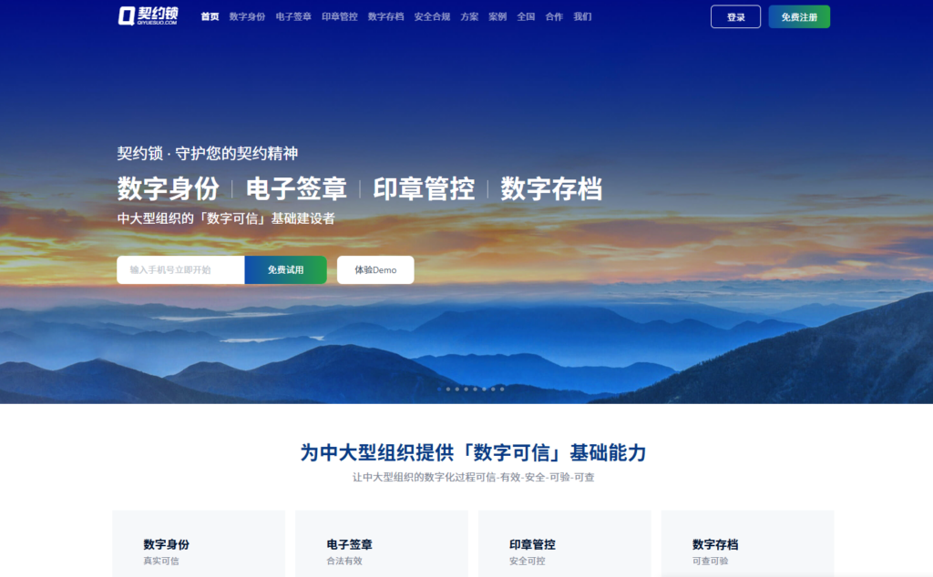 契约锁是一家专注于为中大型组织提供电子签章及印控一体化解决方案的服务商。它的产品特色在于将电子签名与实体印章的管控相结合,通过“内外一体”的管理模式,帮助企业构建统一的印章管理平台。这不仅解决了线上电子合同的签署问题,也通过智能化硬件设备将传统实体印章的使用纳入了规范化、数字化的管理范畴。