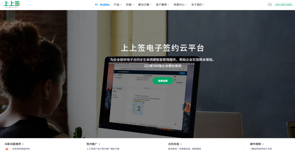 上上签是国内领先的电子签约云平台之一,为企业提供覆盖合同全生命周期的电子签约SaaS服务和定制化解决方案。平台强调其合规性和安全性,通过与权威CA机构合作,确保电子合同的法律效力。其产品功能全面,涵盖了合同模板、在线起草、多角色签署、印章管控、存证出证等,致力于帮助企业实现合同管理的数字化转型。