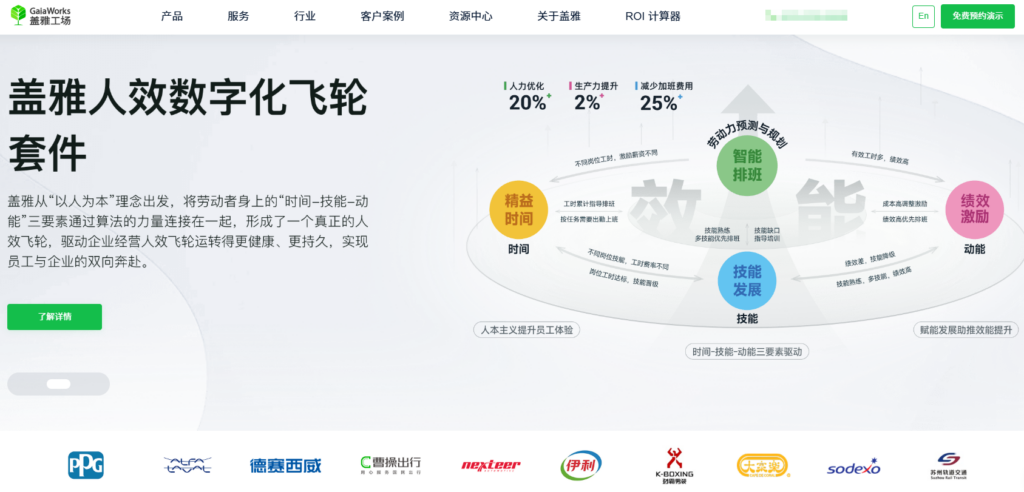 盖雅工场是亚太地区知名的劳动力管理云服务商,在劳动力管理领域具有很高的市场知名度。它提供从劳动力预测、智能排班、复杂考勤到工时分析的端到端解决方案。