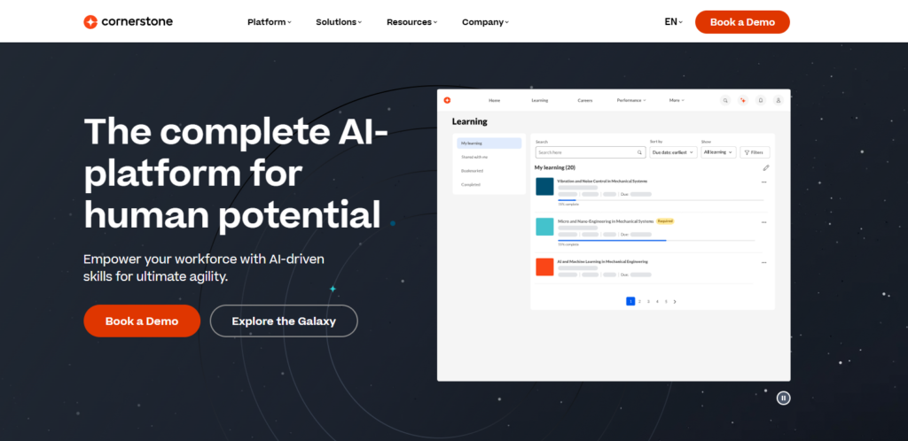 Cornerstone OnDemand是全球企业人才管理软件的领导者之一,其学习平台(Cornerstone Learning)是其综合人才套件(包括招聘、绩效、HR核心)的重要组成部分。它的功能极其强大和全面,专为大型跨国企业的复杂需求而设计。