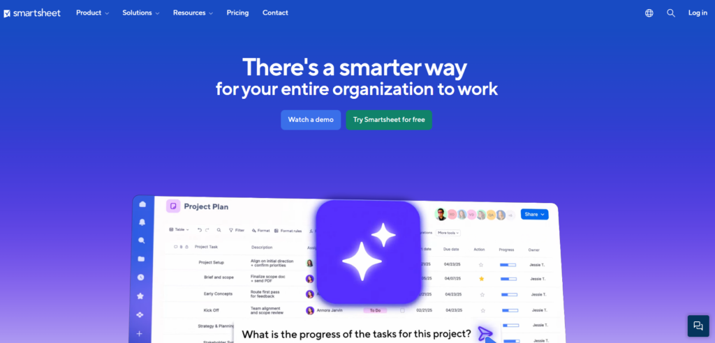 产品简介: Smartsheet 是一款独特的、以“超级电子表格”为界面的工作管理平台。它在熟悉的表格(Grid)视图基础上,赋予了其强大的项目管理、自动化和报表能力。