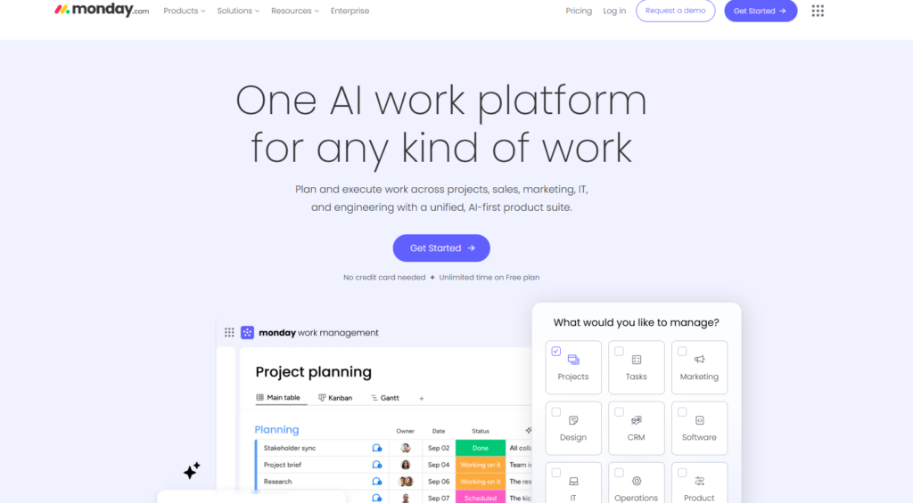 产品简介: monday.com 将自己定位为“工作操作系统”(Work OS)。它提供了一个极其灵活和高度可视化的平台,团队可以通过自定义的“看板”来构建几乎任何类型的工作流。