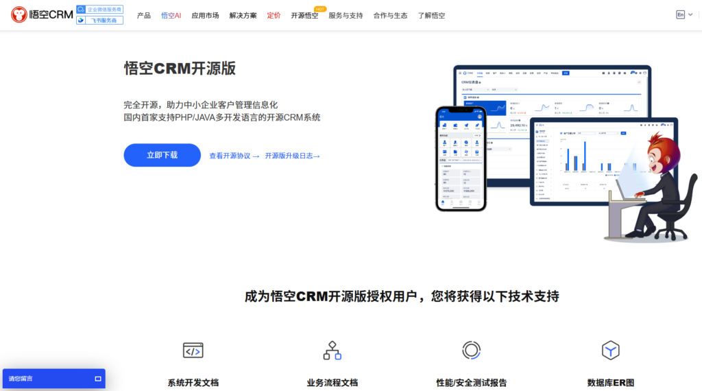 悟空CRM是一款综合型的客户关系管理系统,它在国内市场的一个显著特点是同时提供了SaaS(软件即服务)和开源私有化部署两种版本。这使其既能满足中小型企业快速上云、按需付费的需求,也能满足中大型企业对于数据安全、自主可控和深度二次开发的诉求。