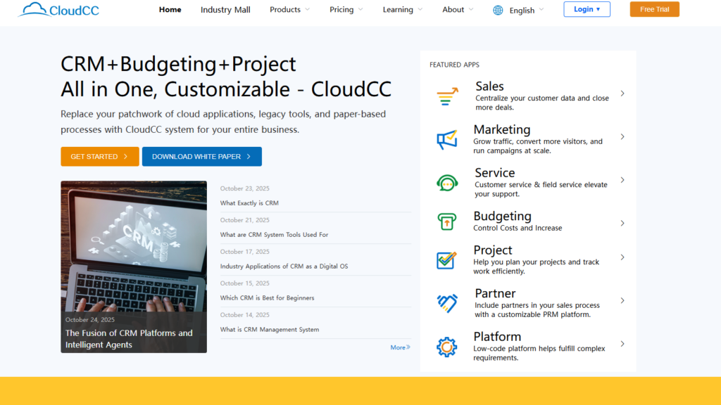 神州云动是一家较早进入国内CRM领域的厂商,其核心产品CloudCC的定位是aPaaS(应用平台即服务)平台。这意味着它不仅提供标准的CRM功能,更提供了一个低代码/无代码的开发平台。