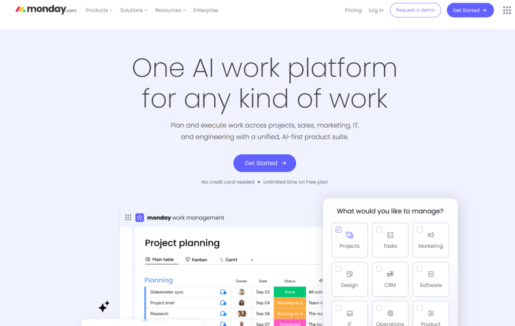 产品简介: Monday.com 是一个国际领先的“Work OS”(工作操作系统)。它提供了一个极其灵活的、积木式的平台,团队几乎可以用它来构建任何管理流程,包括目标和计划管理。