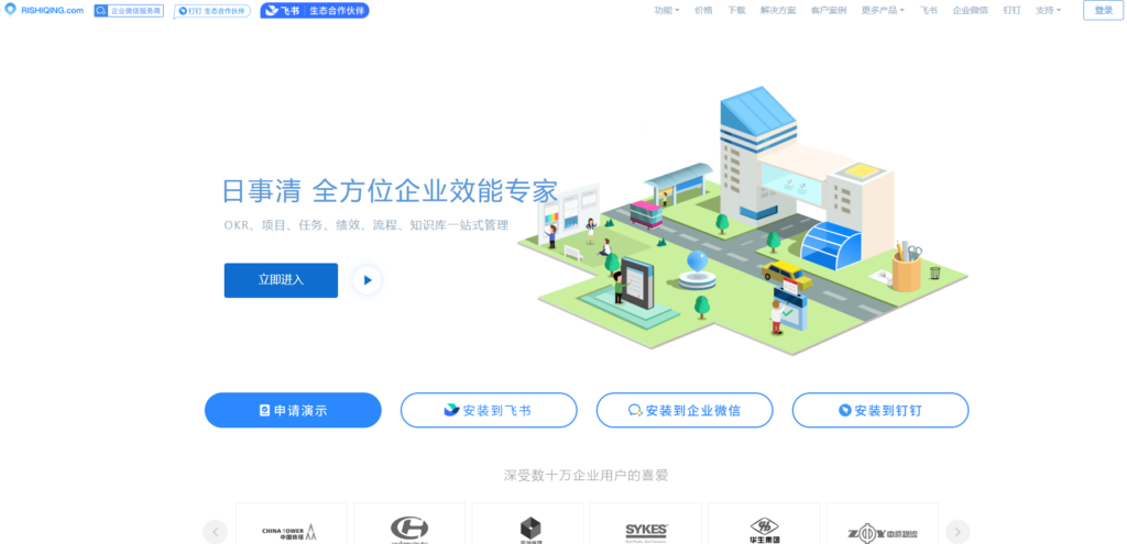 核心功能: 可视化目标地图、OKR 实时跟踪、跨团队目标协作、复盘与评分、集成企业微信/钉钉/飞书。