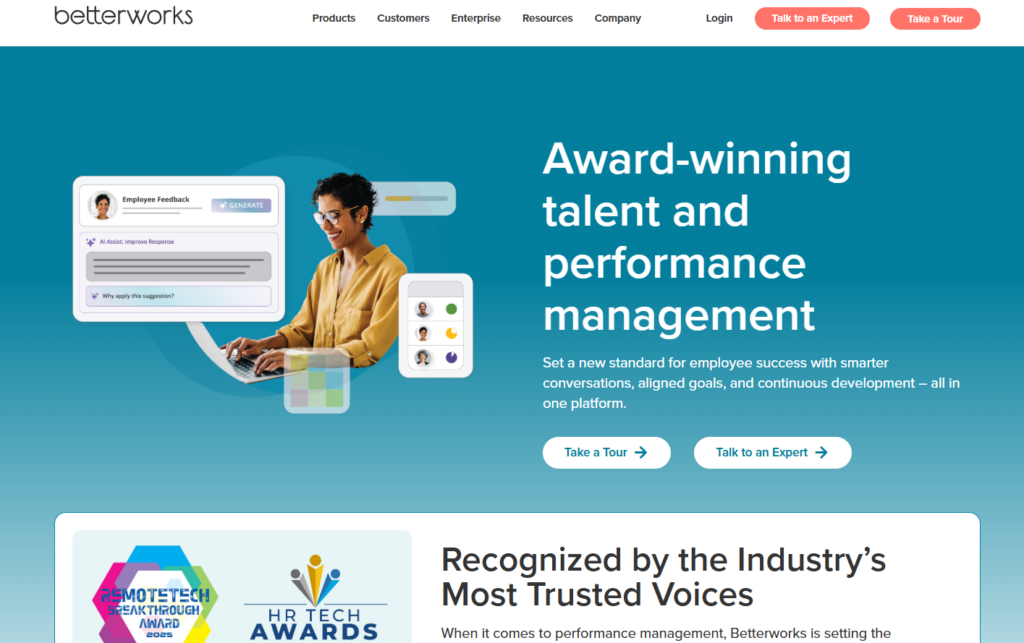 产品简介: BetterWorks 是一款国际知名的企业级持续绩效管理(CPM)与OKR平台,它将目标管理与员工反馈、认可和发展对话融为一体。