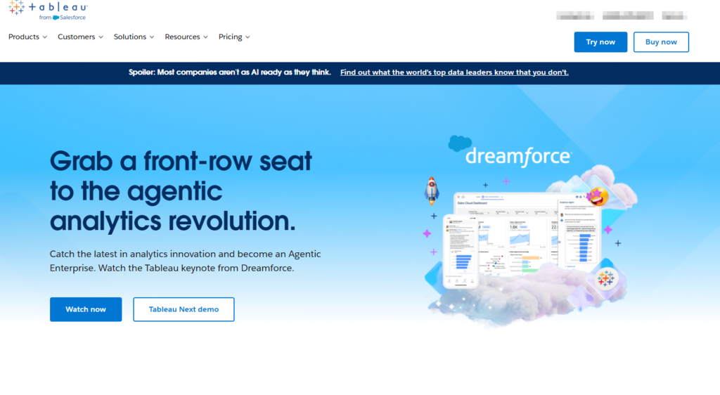 Tableau 是全球数据可视化和商业智能领域的领导者之一,目前隶属于Salesforce。它以其直观的拖放式用户界面和强大的可视化分析能力而闻名,几乎引领了“自助式BI”的浪潮,使得非技术背景的业务用户也能轻松探索数据并创造富有洞察力的图表。