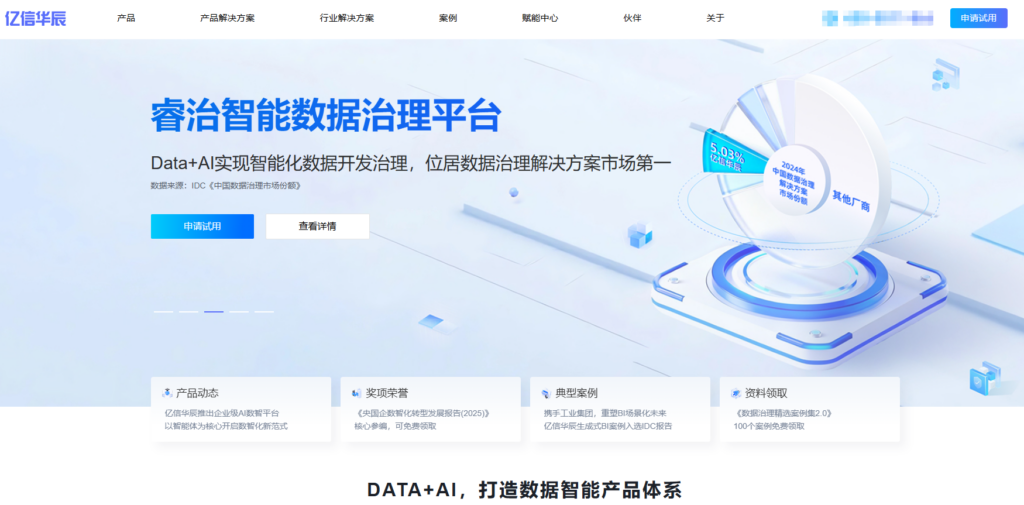 亿信华辰是国内较早进入数据分析领域的服务商之一,提供的是一整套覆盖数据全生命周期的产品矩阵。其产品线不仅包括了商业智能分析工具,还深入到了数据治理、数据集成、数据仓库建模等上游领域,致力于提供“一站式”的数据解决方案。