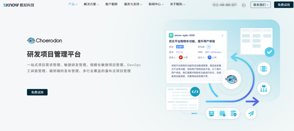 核心功能:敏捷项目管理、项目集管理、知识库、测试管理、DevOps流水线。
