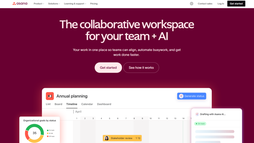 产品简介:Asana 是一款国际顶尖的工作任务管理SaaS工具,以其现代化的界面和强大的项目规划能力,深受全球市场团队的青睐。