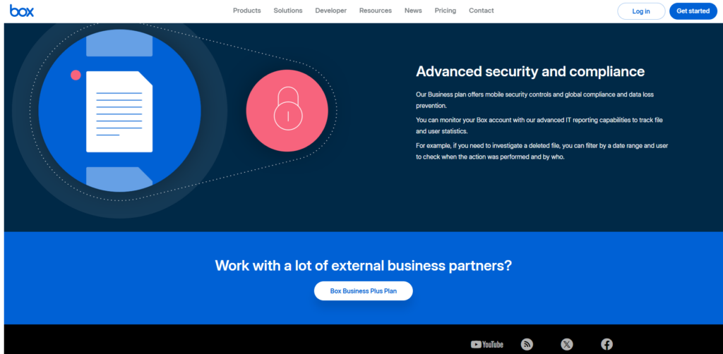 Box在处理受监管数据方面表现出色,符合包括HIPAA、FINRA、GDPR在内的多种国际行业标准和法规,是金融、医疗、法律等行业的首选之一。它提供了先进的威胁检测、数据治理、权限控制和内容生命周期管理功能。