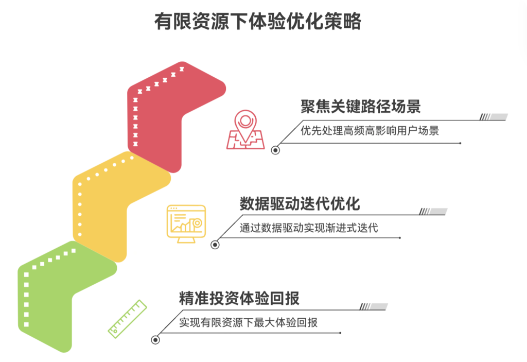 在有限资源下提升用户体验的核心策略,是聚焦关键路径、优先优化高频与高影响场景,并通过数据驱动与渐进式迭代实现最大体验回报。 换句话说,在资源紧张时,体验优化不是无底洞,而是一门精准投资学。正如管理学原则指出:“不是把所有事情做对,而是把最重要的事情做对。”有限资源不是阻力,而是迫使团队将体验打磨到最具价值的方向。