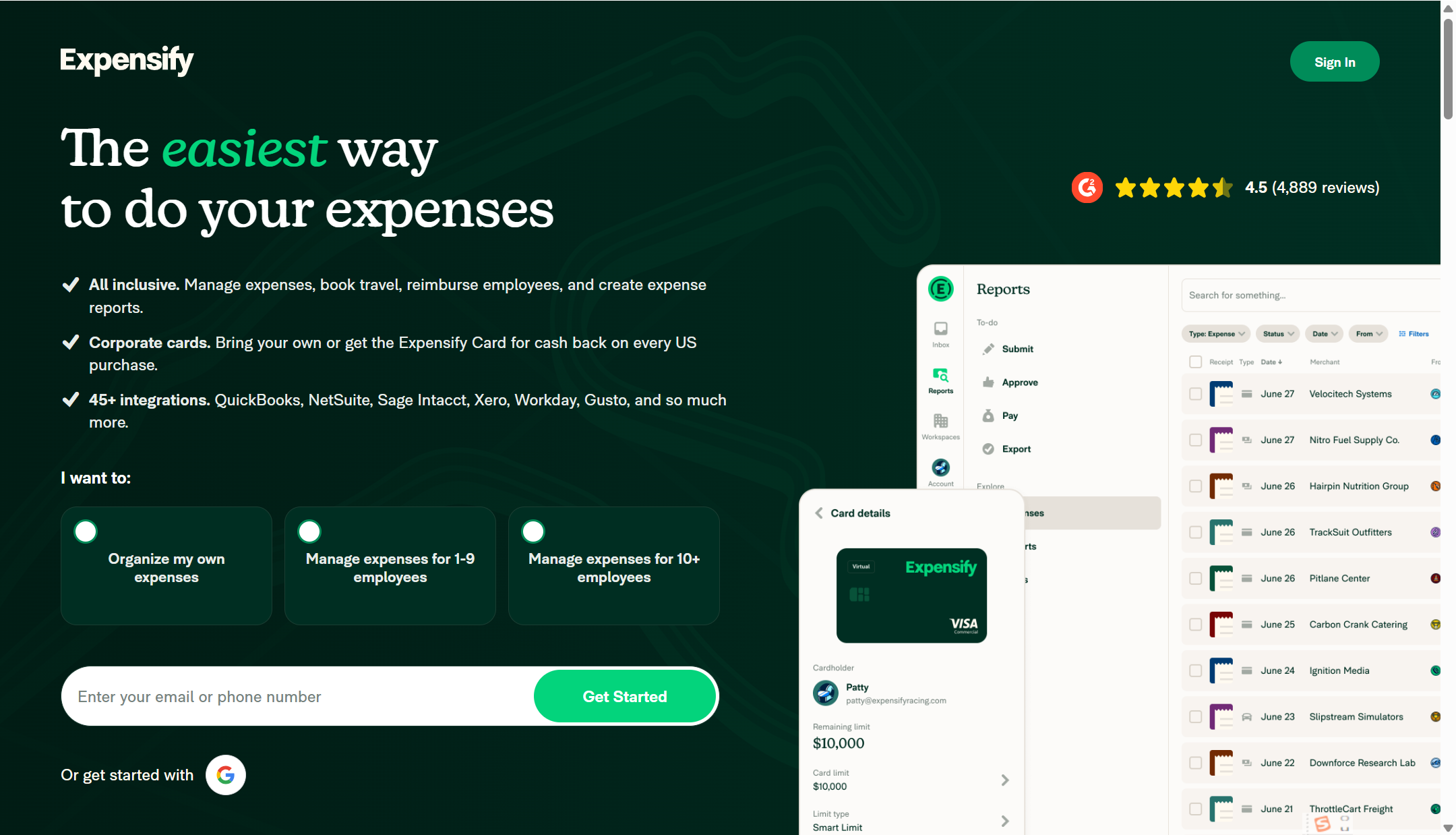 Expensify 是海外普及度很高的费用与支出管理工具,定位为把“收据采集、费用生成、报表提交、审批报销”自动化的一体化平台。它常见的使用路径是员工用移动端拍照或上传收据,系统自动提取信息并生成费用行,再将费用汇总成报告进入审批与支付流程。对强调远程协作与快速报销的团队来说,这种轻量工作流较友好。