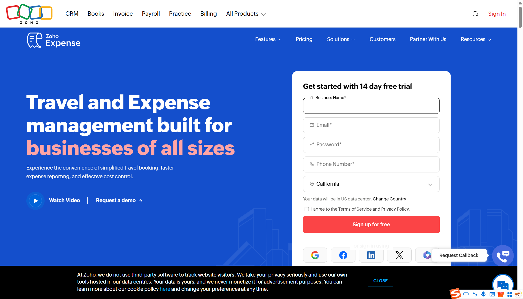 Zoho Expense 是 Zoho 生态中的差旅与费用管理产品,定位为自动化 T&E 系统。它覆盖差旅申请、费用填报、票据采集、审批流、公司卡同步与报表分析等流程,并通过企业政策规则在报销前进行合规校验。整体设计偏向“自助报销 + 自动归集”,让费用从发生到入账尽量减少人工参与。
