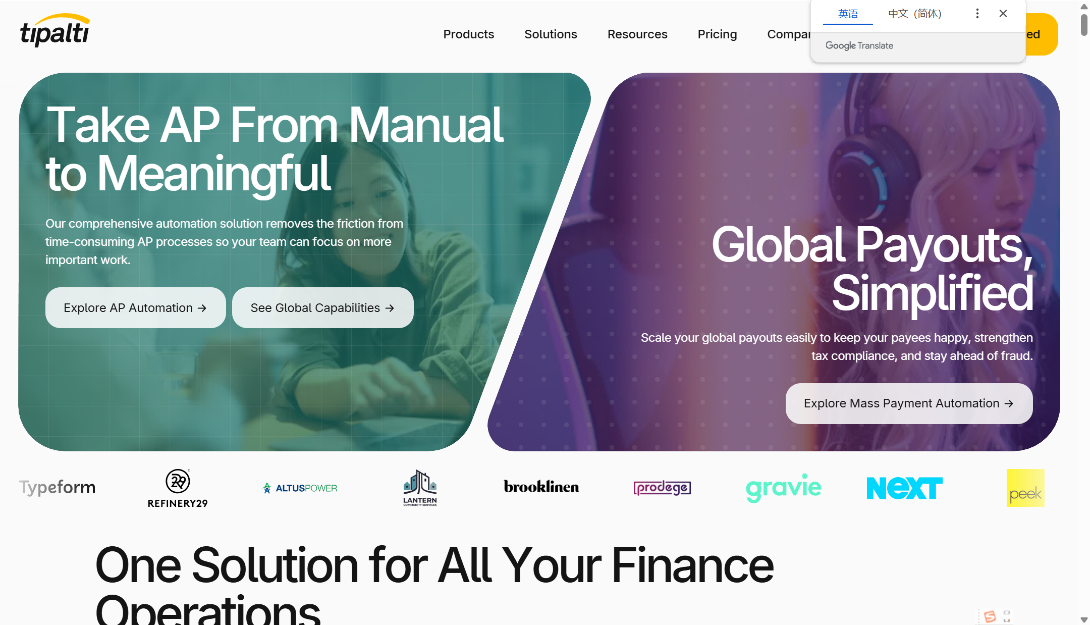 Tipalti 是面向全球化企业的财务自动化平台,在应付账款与跨境支付管理上优势突出。它覆盖供应商/员工付款、发票处理、税务合规校验、支付执行与对账等环节,帮助企业用统一系统管理全球范围内的支出与付款流程。对支付对象多、地域分散、收支链路复杂的组织来说,这类全局型 AP 平台是常见选择。