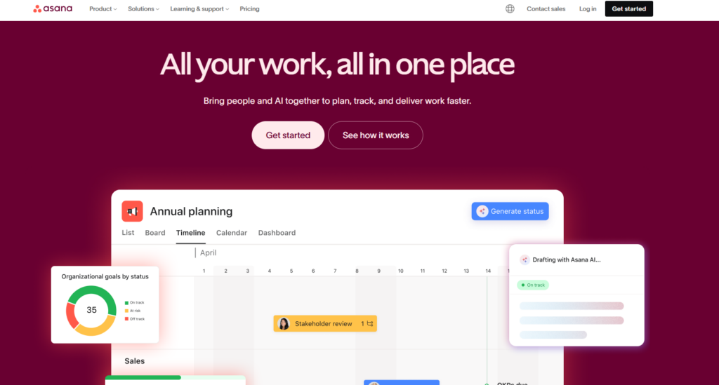 产品简介: Asana 是源自美国硅谷的顶级任务管理软件,由 Facebook 联合创始人达斯汀·莫斯科维茨创办。它旨在解决“关于工作的工作”这一低效问题,即减少用于协调、沟通和查找信息的时间。Asana 以其极其流畅的用户体验、色彩丰富的界面设计和灵活多变的视图切换功能而闻名全球,是现代 SaaS 软件设计的标杆之一。