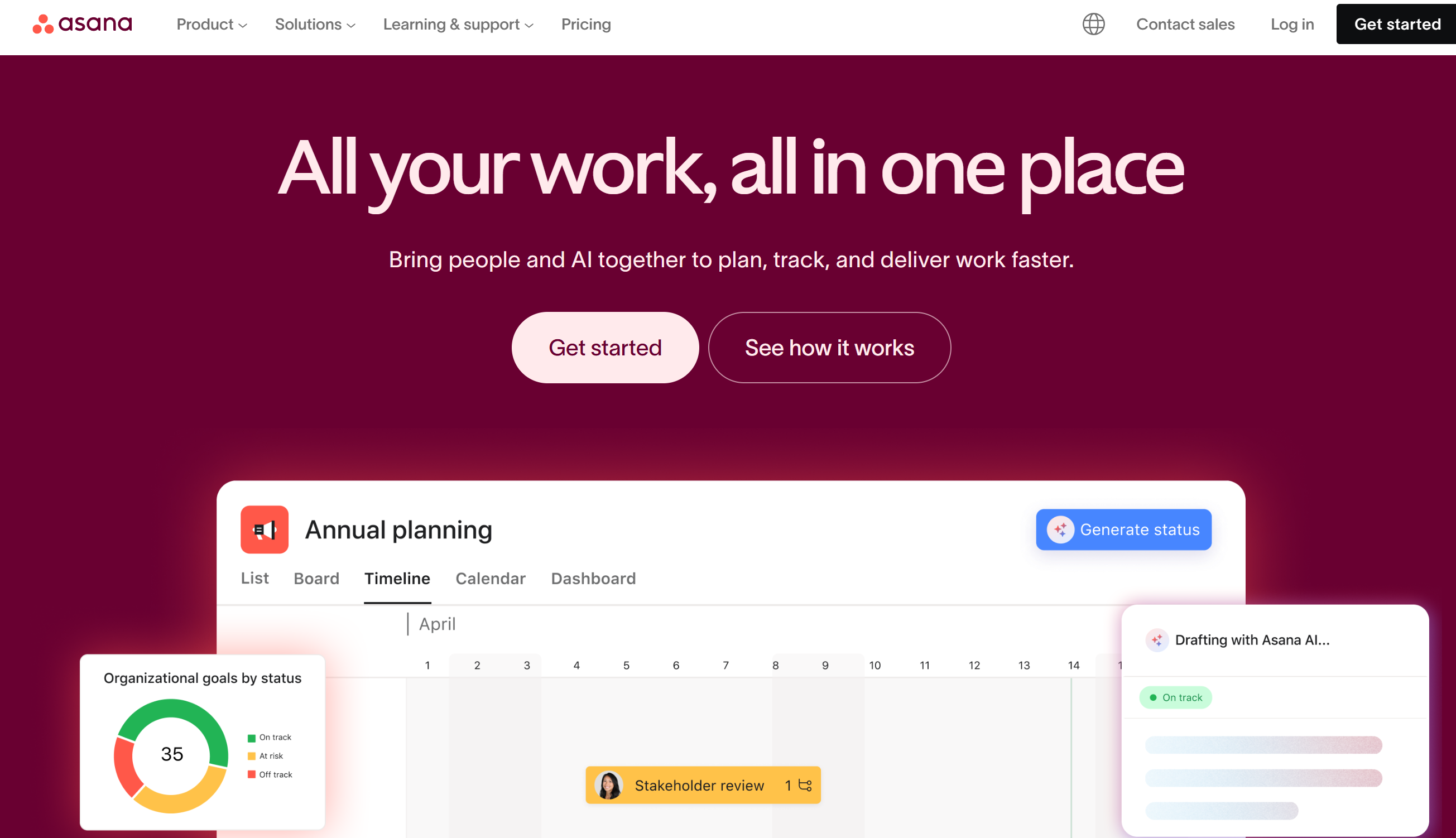Asana 通过高度可视化的工作方式和全面的团队协作能力,成为全球广泛使用的任务与项目管理工具。其多视图结构使团队能够根据不同类型的项目灵活组织工作,对于追求透明化流程和较高协作效率的团队来说,是一款成熟可靠的工具。