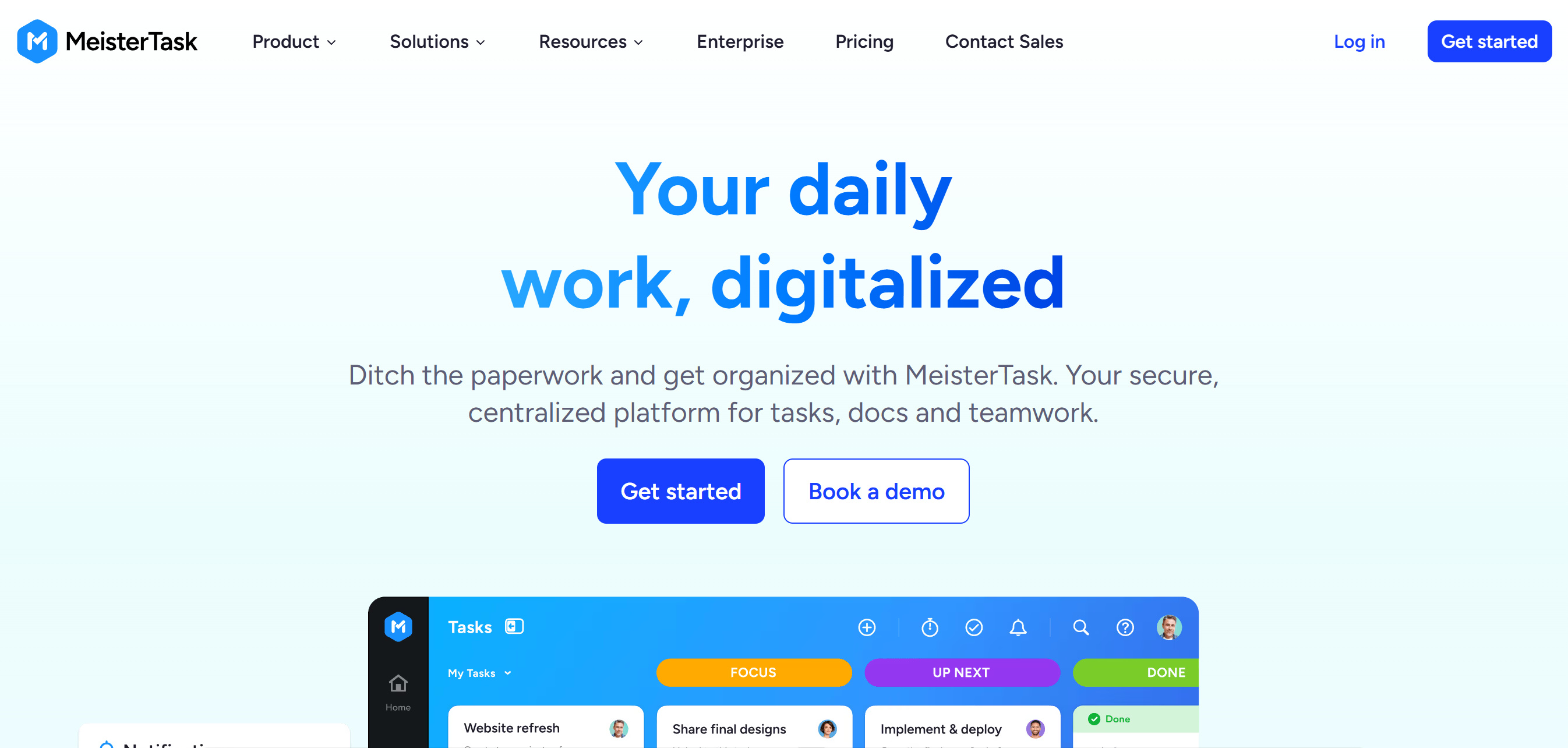 MeisterTask 是由 MeisterLabs 推出的在线任务与项目管理工具,以看板模式为核心,强调简洁界面与流畅操作体验。它与同属 MeisterLabs 的思维导图工具 MindMeister 深度结合,在创意规划与任务执行之间形成自然衔接。