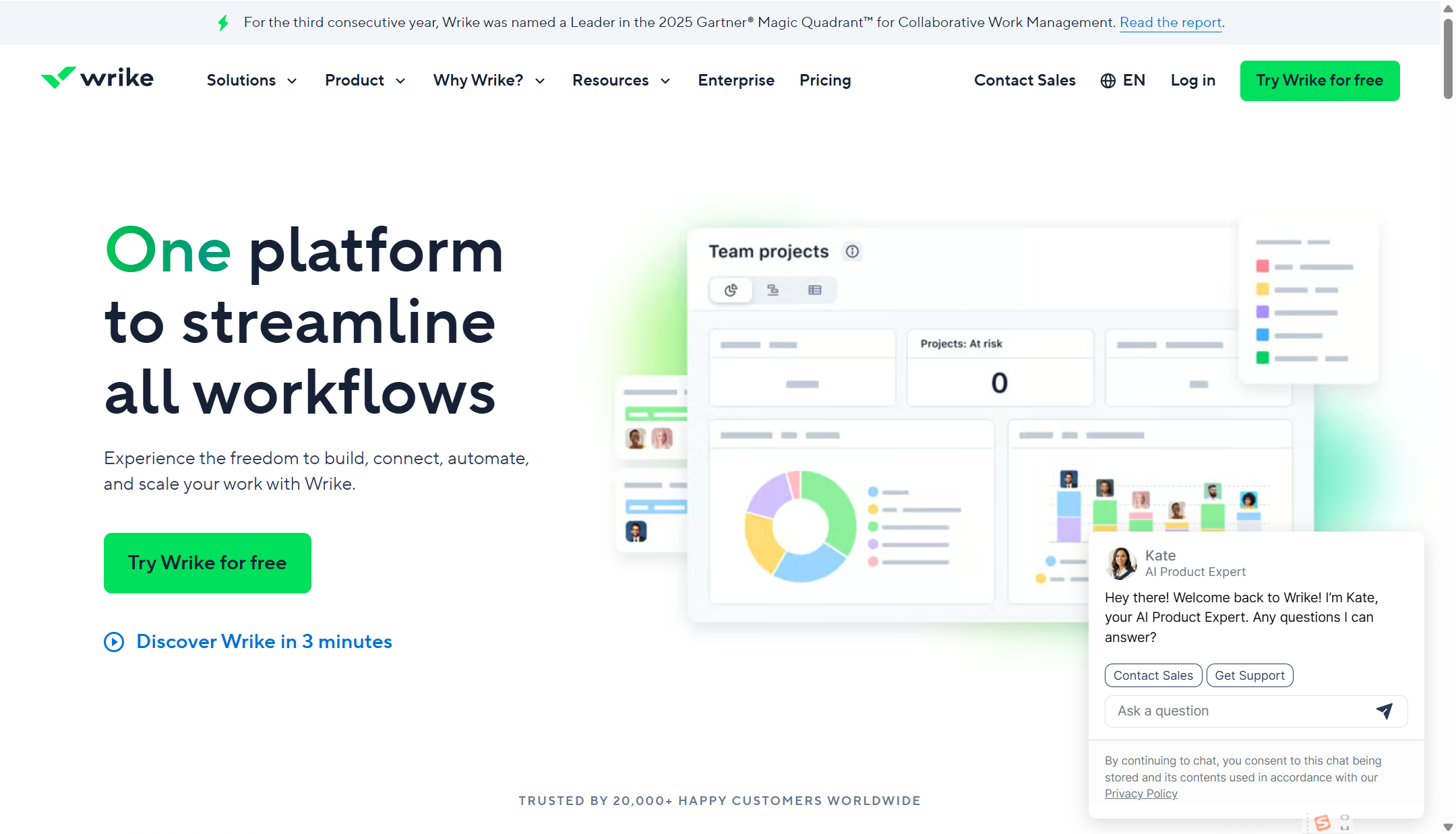 近年来,Wrike 引入了 AI 辅助能力,包括自动建议任务内容、数据分析、风险识别等功能,让项目管理过程更加智能化。在扩展性方面,Wrike 能与工具如邮箱、文件存储、客服系统、开发工具等集成,使跨系统协作更加顺畅。对于需要处理大量项目、强调流程可配置性、希望将运营与项目统一在一套平台中的组织来说,Wrike 具备较高灵活性和应用深度。