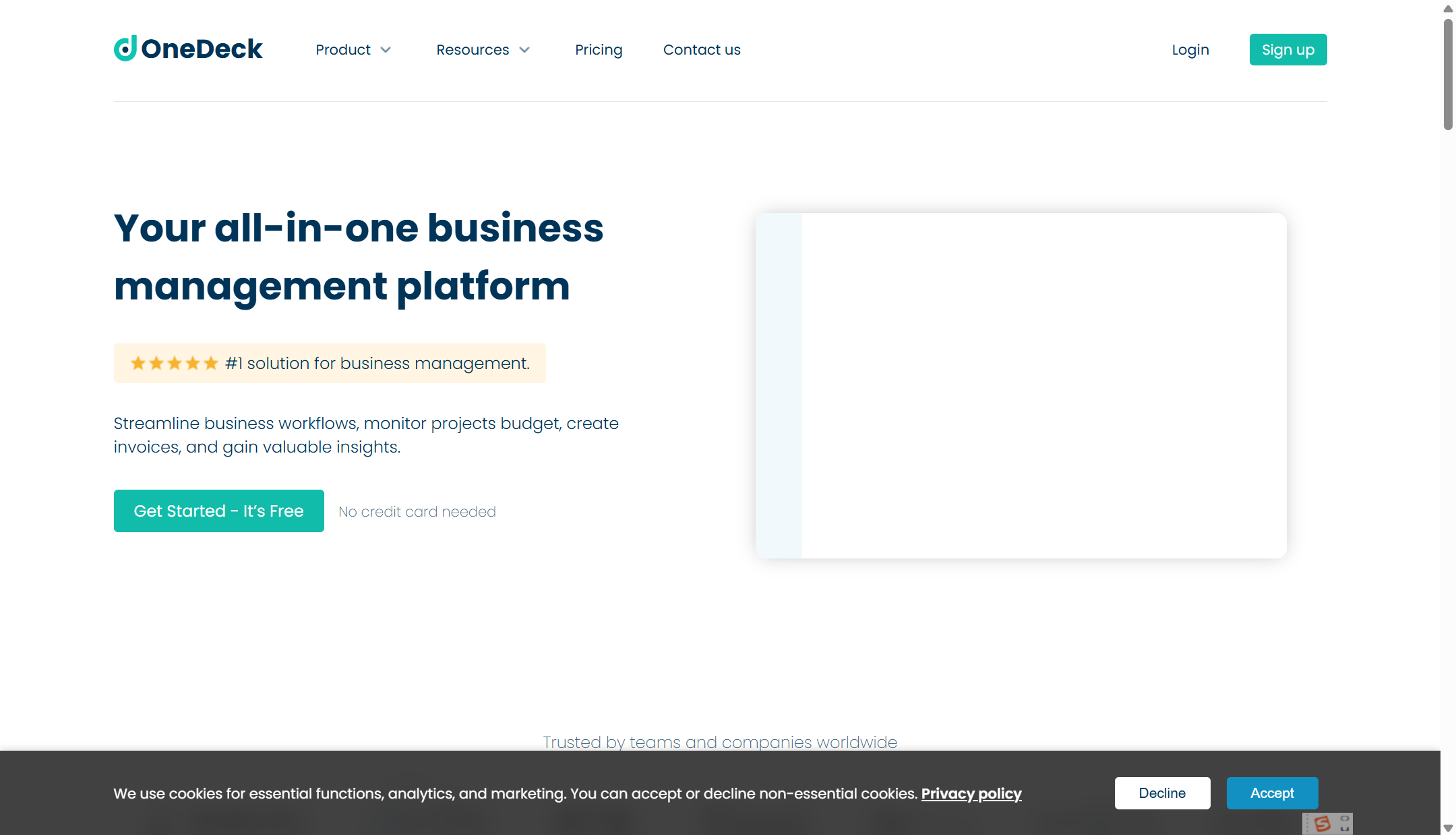 OneDeck 是一款面向中小团队与专业项目团队的轻量化项目管理与协作平台,提供任务管理、进度追踪、文件共享、团队沟通等基础功能。它支持看板、列表、日历和时间线等多种视图,让团队能够根据自身习惯灵活组织项目结构。由于界面简洁、易于上手,OneDeck 特别适合希望快速建立协作体系、但又不希望承担复杂部署成本的团队。