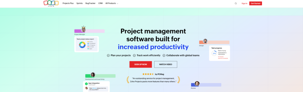 Zoho Projects 是一款基于云端的项目管理软件,由 Zoho 公司推出,致力于为中小企业和跨部门团队提供灵活、高效的项目协作解决方案。它支持任务管理、里程碑、工时追踪、甘特图、项目工期规划等核心功能,同时具备文档共享、讨论区和动态更新等协作机制。Zoho Projects 的一个亮点是其自动化功能,如基于蓝图的流程设置,以及任务状态之间的条件流转,有助于规范团队操作流程,提高执行效率。
