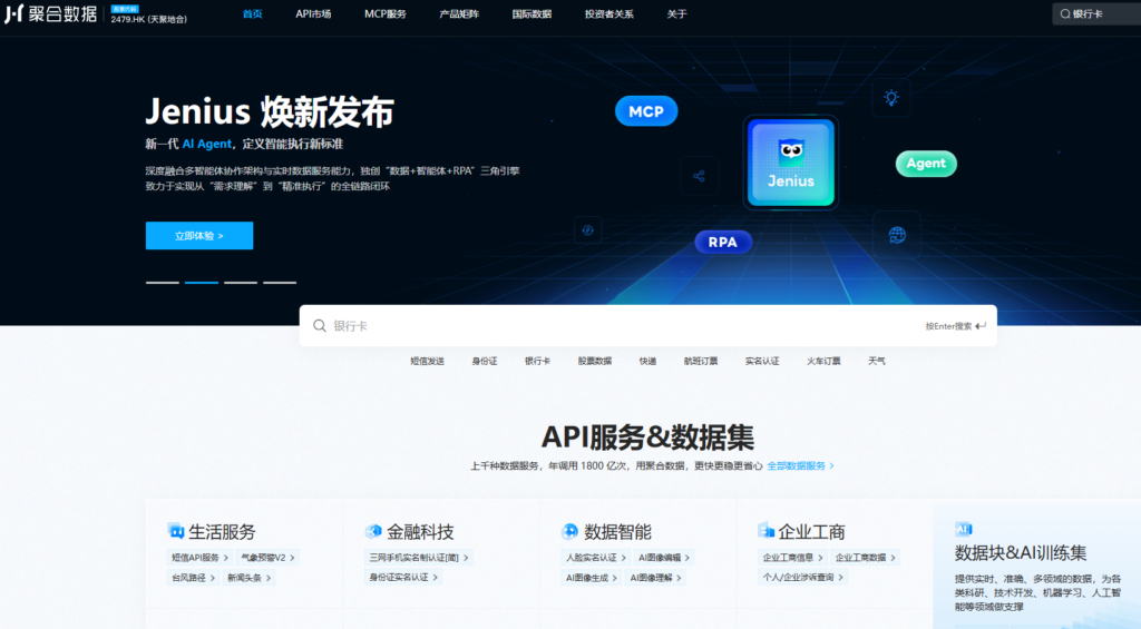 聚合数据是国内较早起步的基础数据技术服务商,以 API 数据接口超市的模式闻名。其提供的身份证实名认证和人像比对接口,主要特点是标准化程度高且接入便捷。聚合数据通过整合上游权威数据源,为开发者提供了一套清晰、易用的调用文档,极大地降低了企业对接数据服务的技术门槛和商务谈判成本。