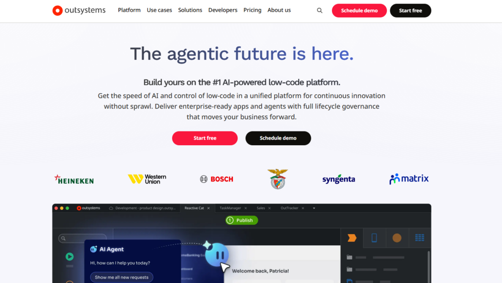 OutSystems是全球低代码开发市场的领军者,以其强大的企业级全栈开发能力而闻名。与许多轻量级工具不同,OutSystems旨在替代传统的代码开发,支持构建关键任务型的大型应用。它提供了极高自由度的可视化开发环境,同时也允许专业开发者在必要时注入底层代码,确保了系统的扩展性和性能。