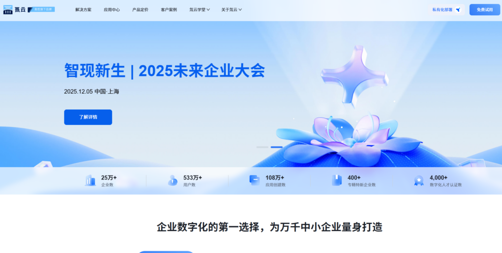 该平台适合那些已经在使用或计划建立大型协同办公生态的企业。它提供了强大的组件库和行业解决方案,能够帮助IT部门快速响应业务端的定制化需求,同时保证系统架构的稳定性和安全性,是传统企业实现管理数字化的有力支撑。