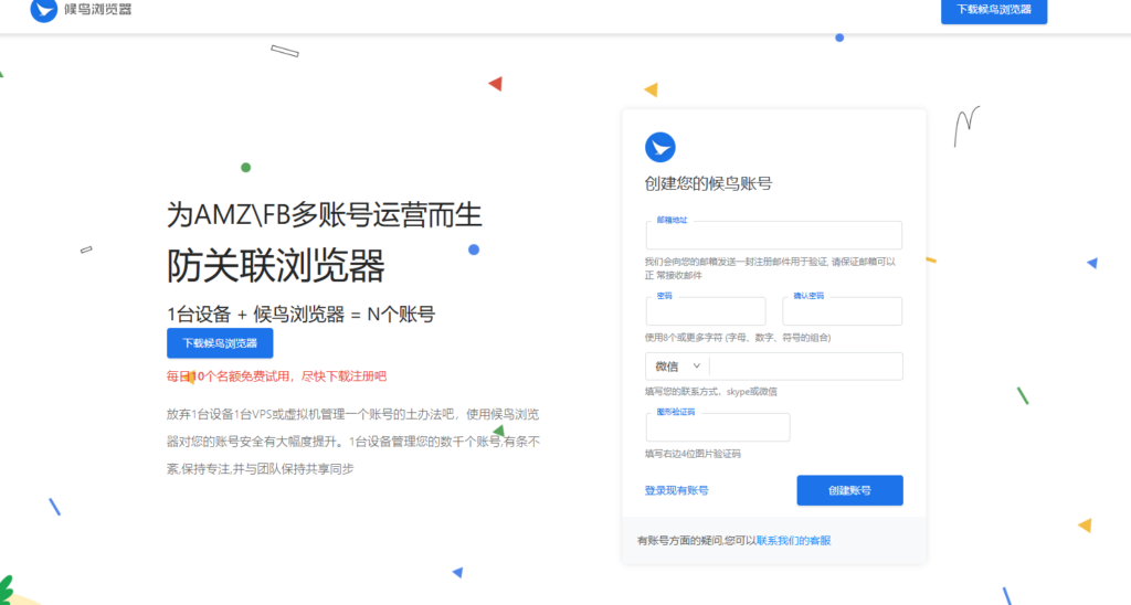 候鸟浏览器是一款专门为跨境电商卖家打造的防关联工具。它提供了基于 Chromium 内核深度开发的虚拟浏览器环境,能够为每个环境配置独立的指纹参数。其核心优势在于对浏览器指纹的模拟精度,能够有效隔离不同账号间的关联因素,深受亚马逊、eBay等平台卖家的关注。
