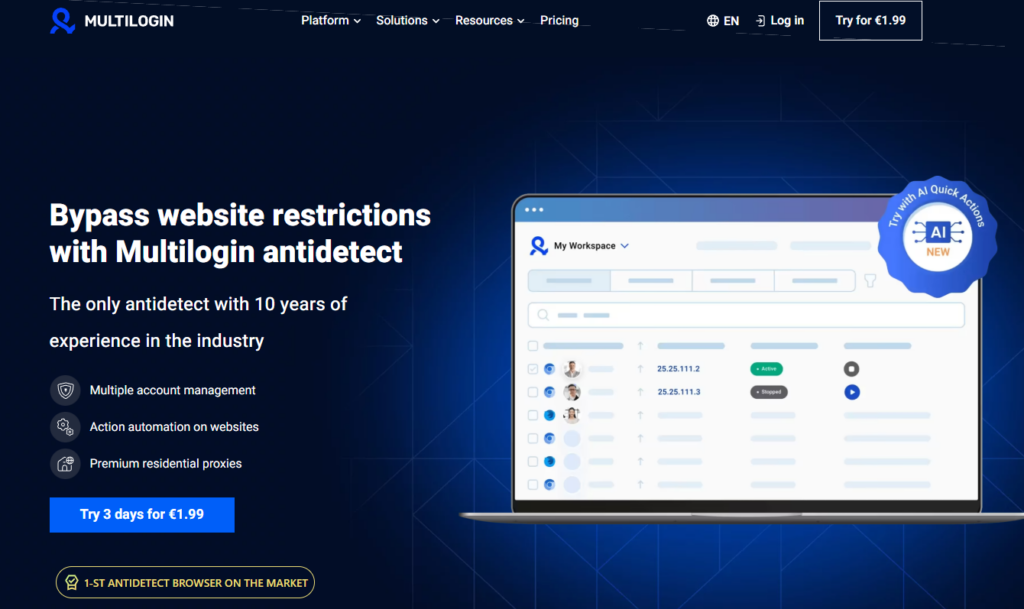 Multilogin 是全球指纹浏览器领域的行业标杆,总部位于欧洲。作为该技术的先行者,它以极高的技术严谨性著称,其开发的 Mimic 和 Stealthfox 两种定制内核,分别对应 Chrome 和 Firefox,旨在提供业界领先的指纹伪装能力。