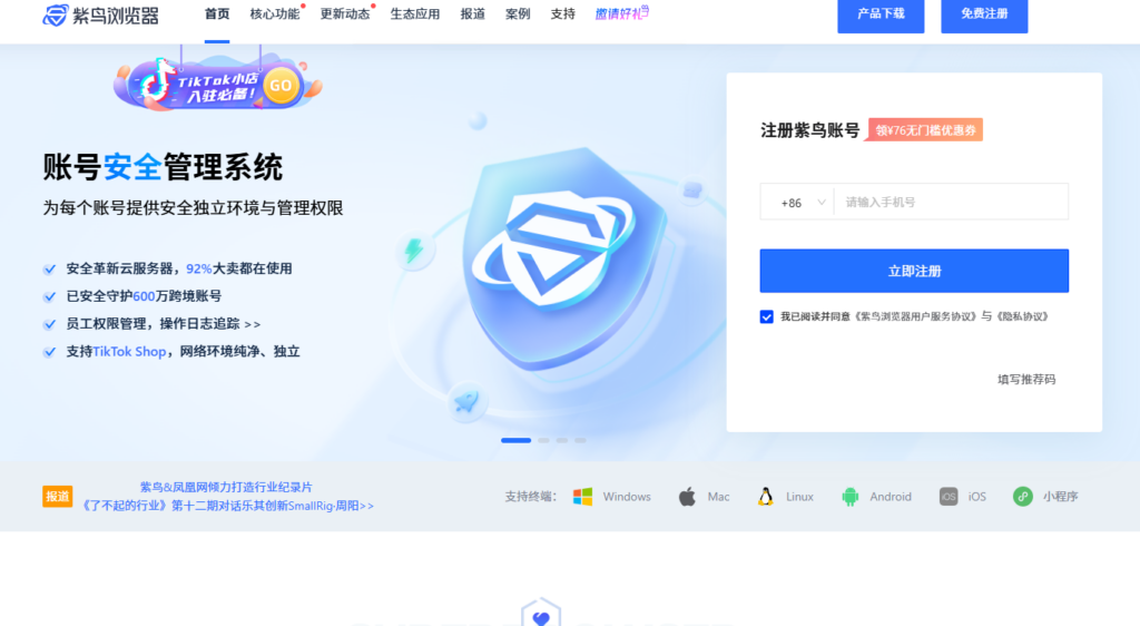 紫鸟浏览器是国内跨境电商领域极具代表性的环境管理系统,特别针对全球主流电商平台的风控规则进行了深度适配。它不仅提供基础的指纹隔离,更侧重于提供一套包含纯净IP资源、账号权限管控和移动端远程操作在内的全链路解决方案,帮助卖家在单一设备上安全登录多个跨境账号。