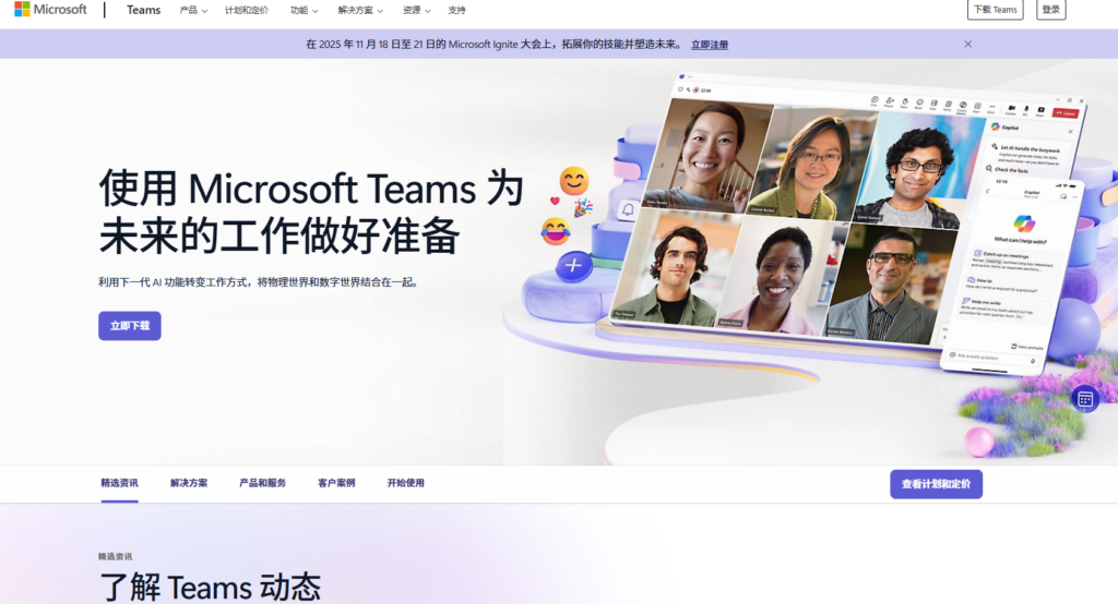 产品简介: Microsoft Teams 是微软推出的基于聊天的工作空间,它集成了人、内容和工具,是 Microsoft 365 生态系统中的团队协作核心枢纽。