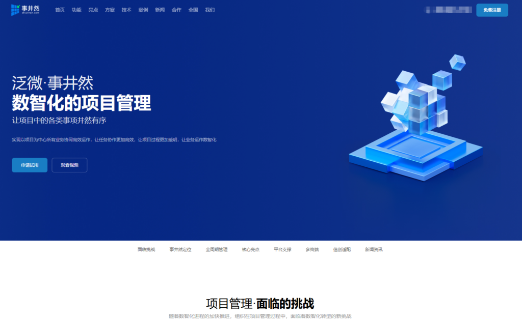 产品简介: 事井然是泛微网络推出的专注于“项目管理”的协作平台,主打“让项目中的各类事项井然有序”,强调项目全生命周期的数字化管控。