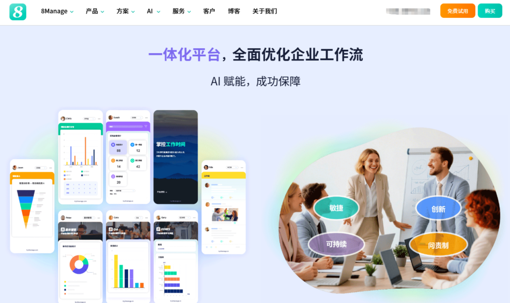产品简介: 8Manage 是由高亚科技(8Manage)开发的企业级管理软件,其核心理念是“一个设计”,旨在通过实时直通的数据架构,解决企业项目管理中信息孤岛和数据延迟的问题。