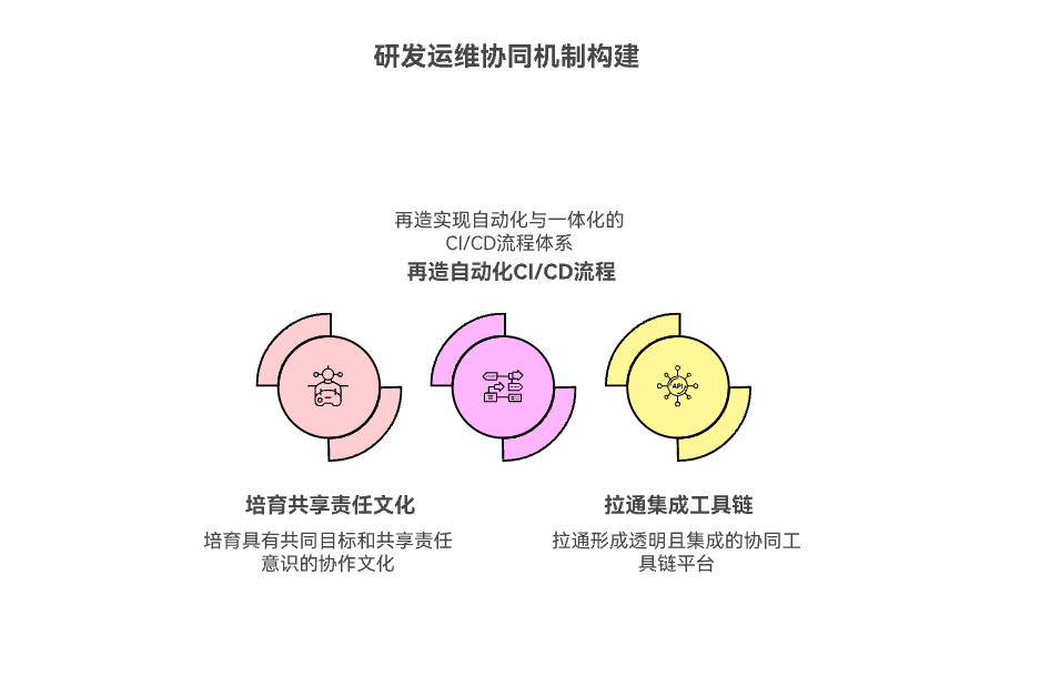 设计和建立研发(Dev)与运维(Ops)的协同机制,其本质是打破组织孤岛,实践DevOps理念。核心在于构建一套“文化、流程、工具”三位一体的系统:即培育“共同目标、共享责任”的文化,再造“自动化、一体化”的CI/CD流程,并拉通“透明、集成”的工具链,最终实现快速、可靠、可持续的价值交付。 这套机制旨在消除传统上研发追求“变更”与运维追求“稳定”之间的核心矛盾。