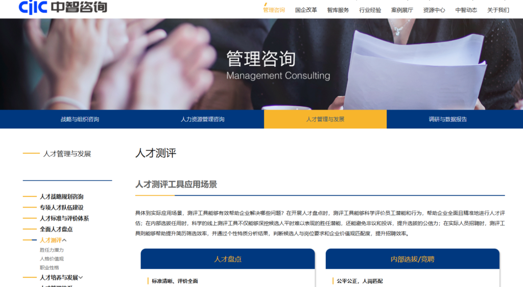 中智提供从线上测评到线下评价中心(AC)的组合式服务。其测评工具涵盖了综合素质、心理健康、管理技能等多个维度,常模标准覆盖了各行各业,是国内公共部门和大型集团化企业选拔人才时的重要参考。