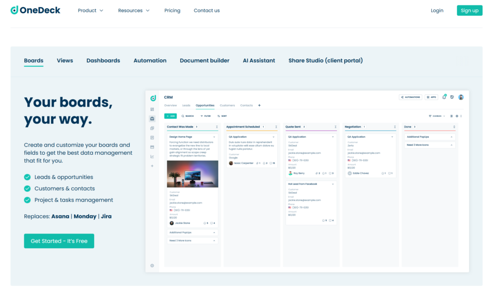 OneDeck 是一款轻量化的协作与项目管理工具,在软件开发过程中可用于任务跟踪、进度展示和团队协同。它通过直观卡片和任务视图,使团队成员能够快速定位当前开发状态。